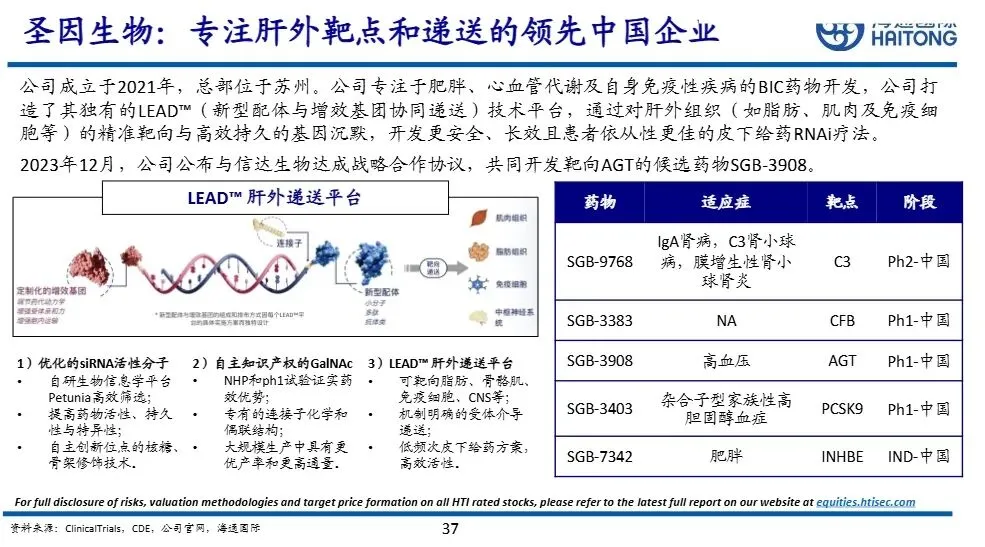 肝外:少数企业(如圣因生物)已开始布局肝外靶点和递送技术,与国际前沿方向一致。