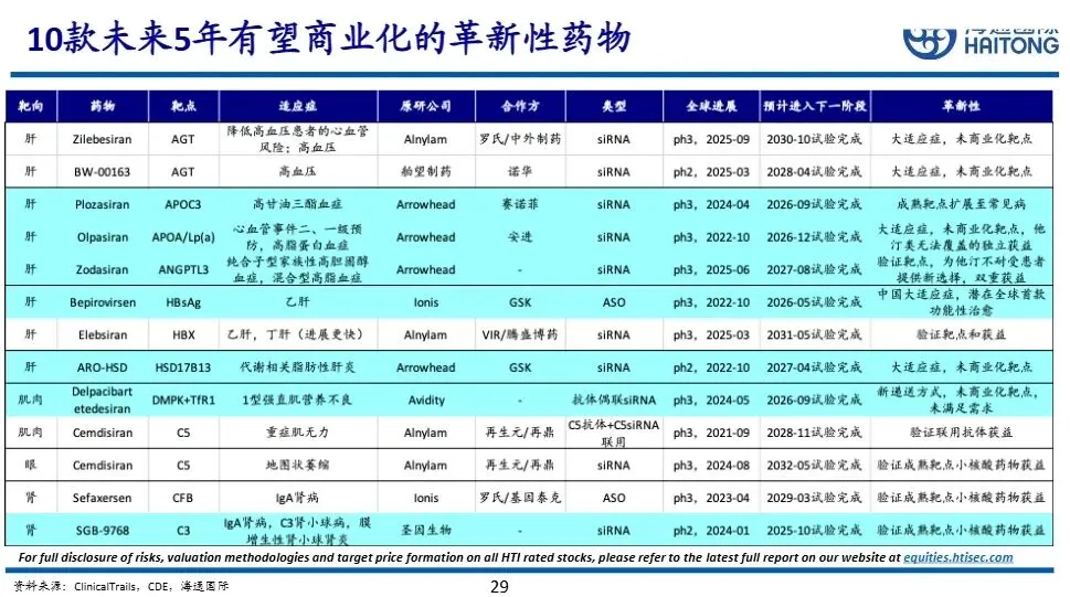 肝内常见病是近期主战场:未来5年,聚焦于降脂(新靶点如Lp(a)、ANGPTL3)、降血压(AGT靶点)和乙肝功能性治愈三大适应症的药物有望革新治疗范式。