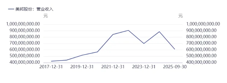 美邦股份的营业收入在2024年有所增长,但2025年有所下降。2024年,美邦股份实现营业收入885,528,317.48元,同比增长26.68%,主要得益于市场开拓和销售规模的扩大[83]。然而,2025年前三季度的营业收入为6.09亿元,同比下降2.23%,第三季度营业收入为1.24亿元,同比增长9.17%。这种增长和下降的趋势表明公司在市场拓展和运营效率上存在波动。未来,公司需要继续关注市场动态,以实现可持续增长。