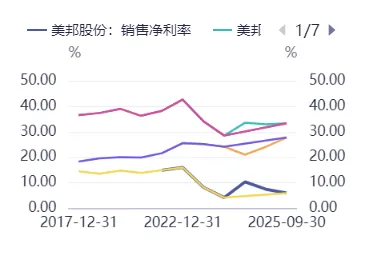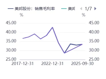 美邦股份的毛利率和净利率在2025年有所变化。2025年前三季度,美邦股份的毛利率为33.4%,同比增加8.62个百分点。然而,净利率为5.94%,同比减少14.45个百分点。公司第三季度的毛利率为35.09%,同比上升2.49个百分点,净利率为5.94%,同比减少14.45个百分点[66][82]。这种毛利率的增加与净利率的减少反映出公司在成本控制方面取得了一定成效,但盈利能力仍然受到挑战。未来,公司需要在提升毛利率的同时,进一步提高净利率,以增强盈利能力。