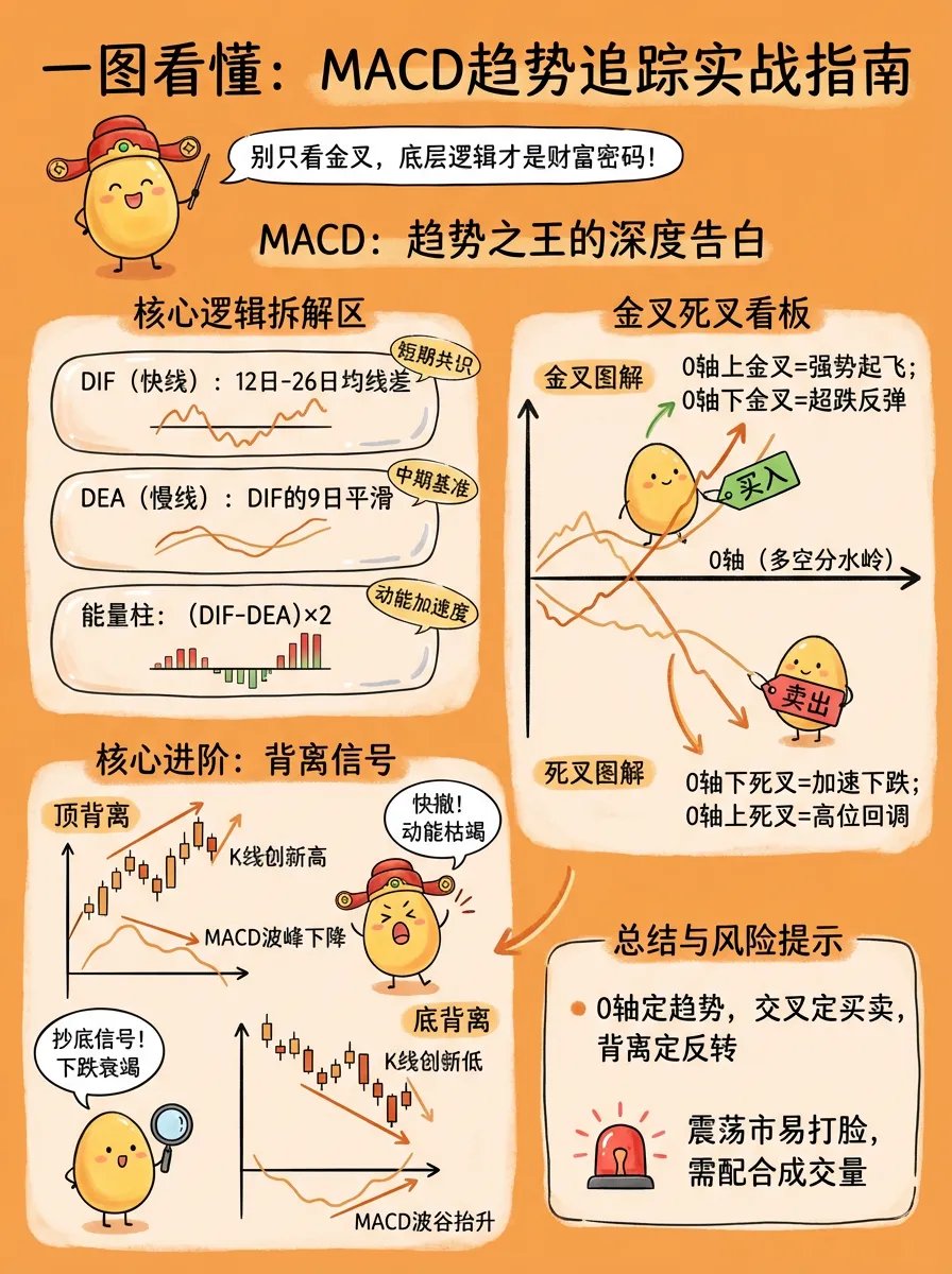 柱状图由红变短: 意味着上涨动能减弱,即便价格仍在创新高,也需警惕见顶风险。 柱状图由绿变短: 意味着下跌动能衰减,市场可能进入筑底阶段。