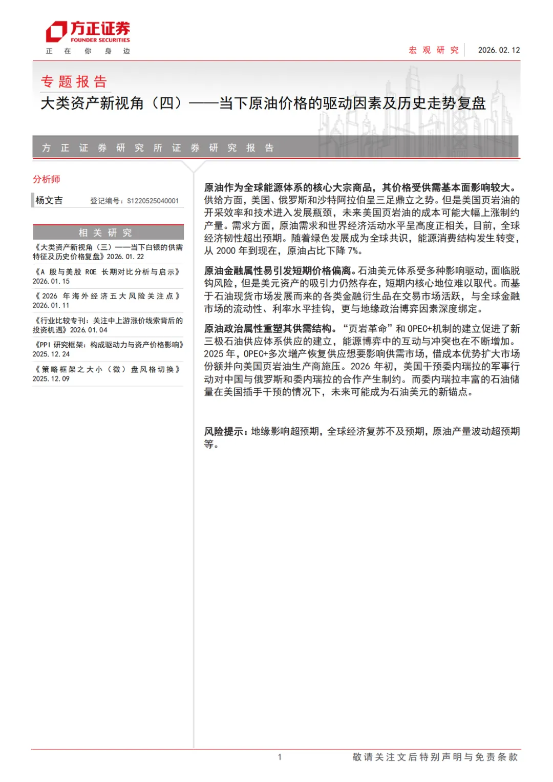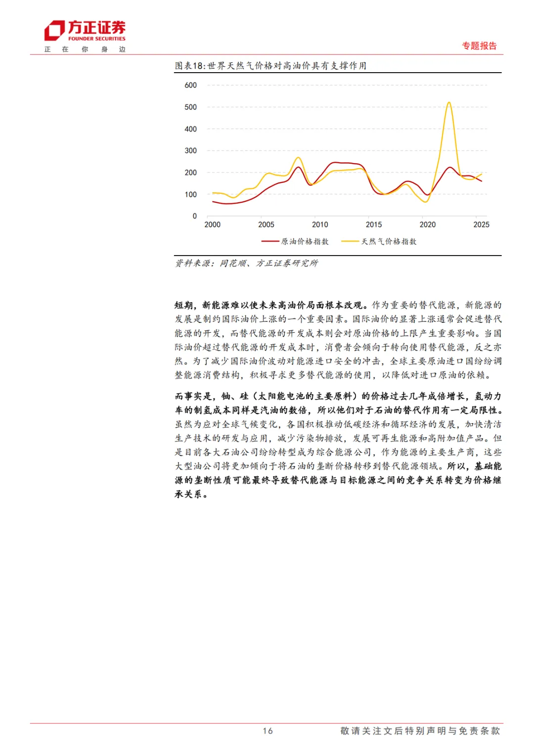 文档重点分析了一个看似矛盾但重要的现象:天然气的发展并未如预期般压制油价,反而形成了支撑。