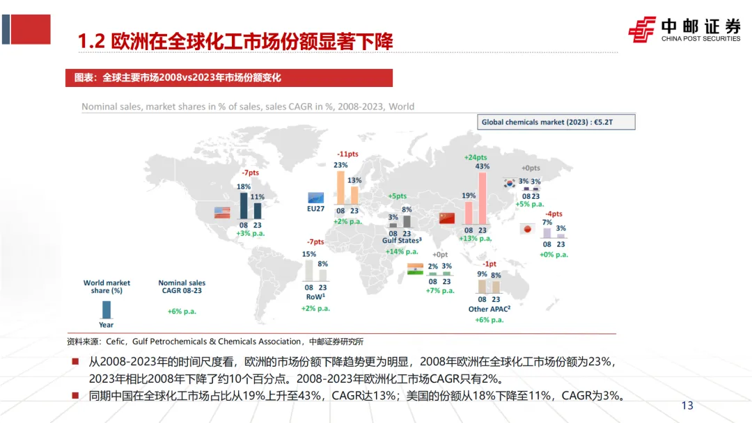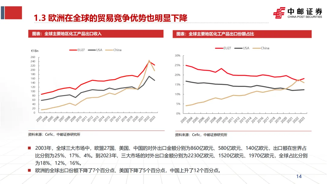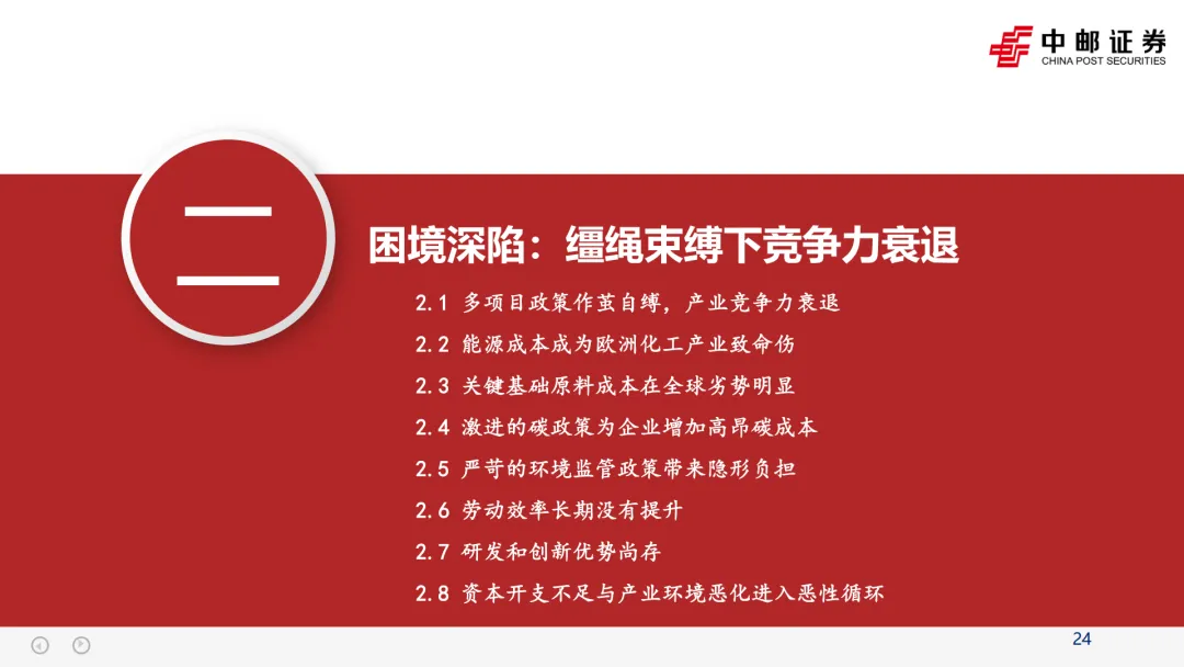 高昂且不稳定的能源价格,叠加严格的环保碳税政策,使得欧洲在基础化工领域的竞争力持续衰退,产能退出和产业萎缩的趋势恐难避免。