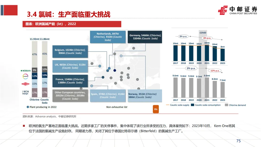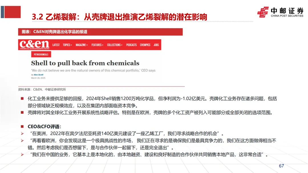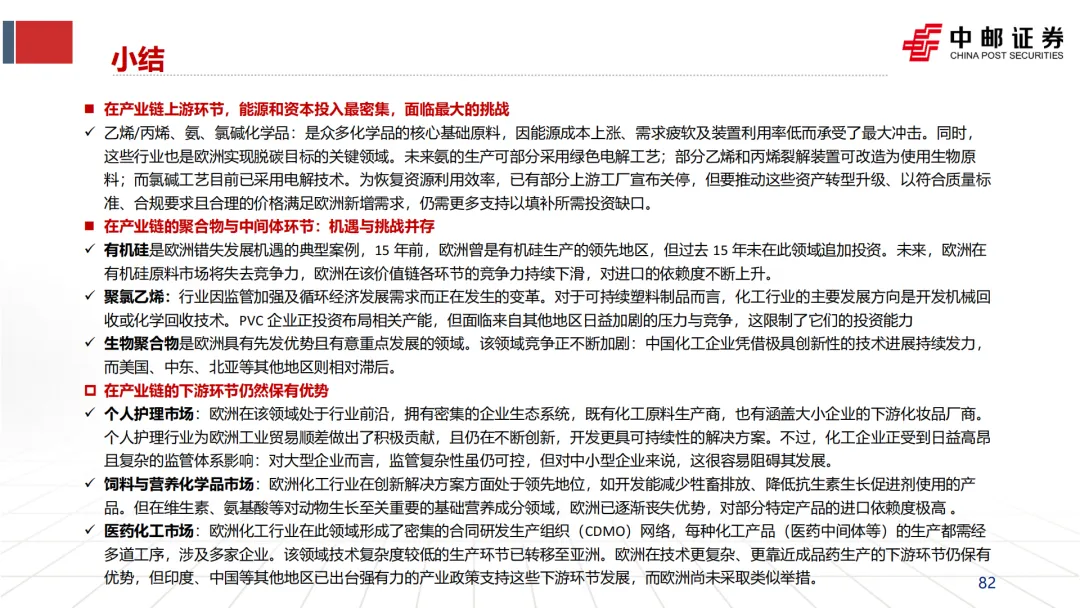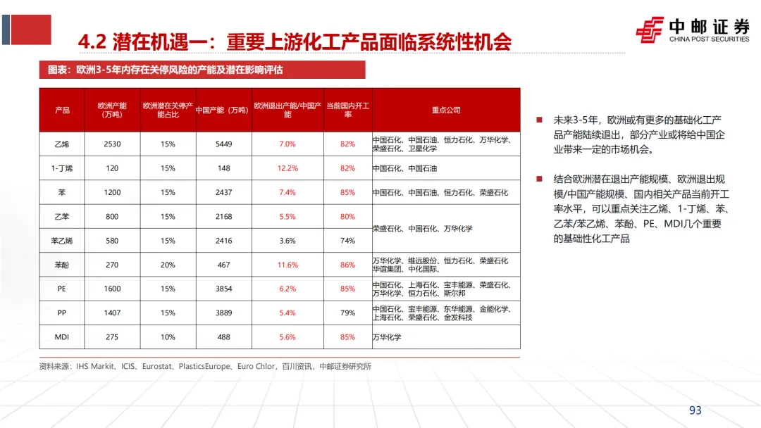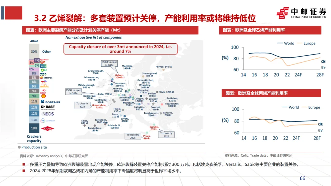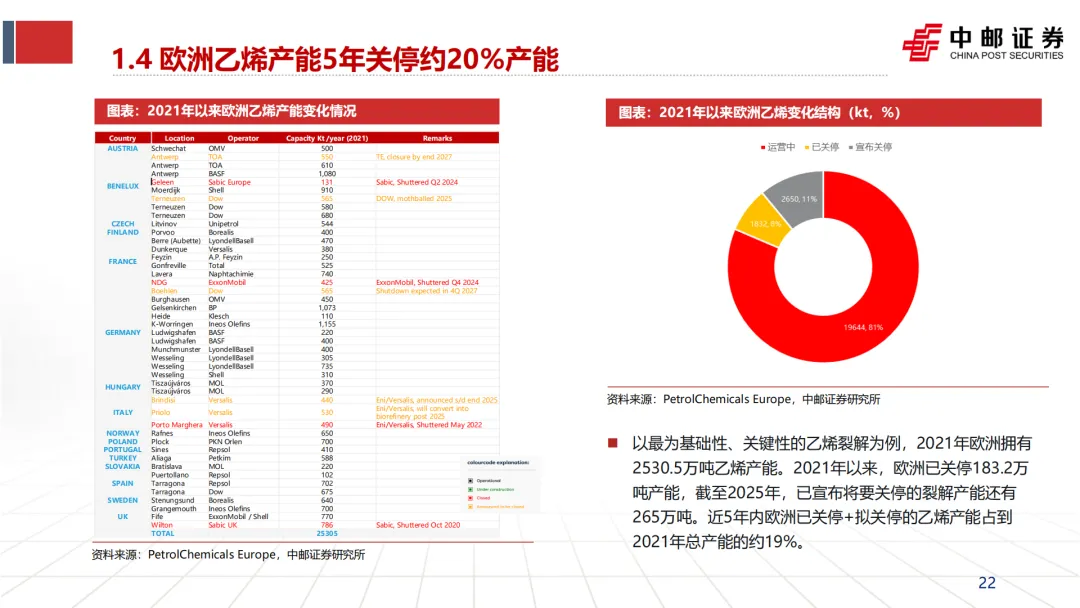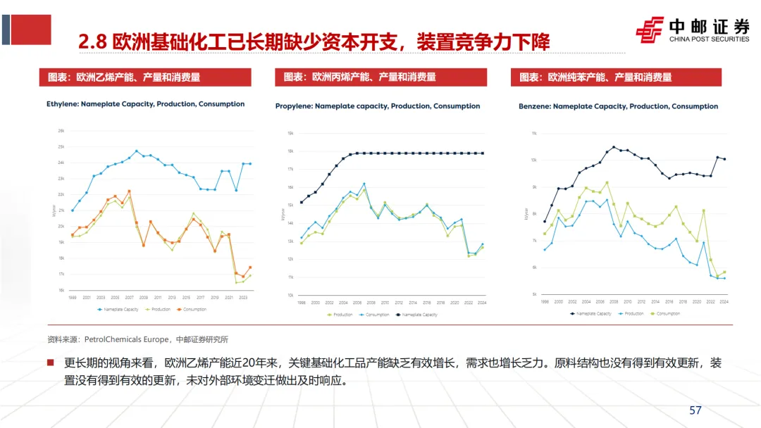 引发并加速“去工业化”:英力士、壳牌等企业CEO在关停装置时,均将“高昂的能源成本”列为首要原因(见文档第25页企业评论)。这直接导致了欧洲乙烯、合成氨、氯碱等基础产能的关停潮。