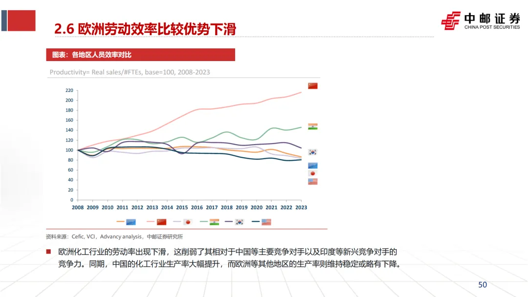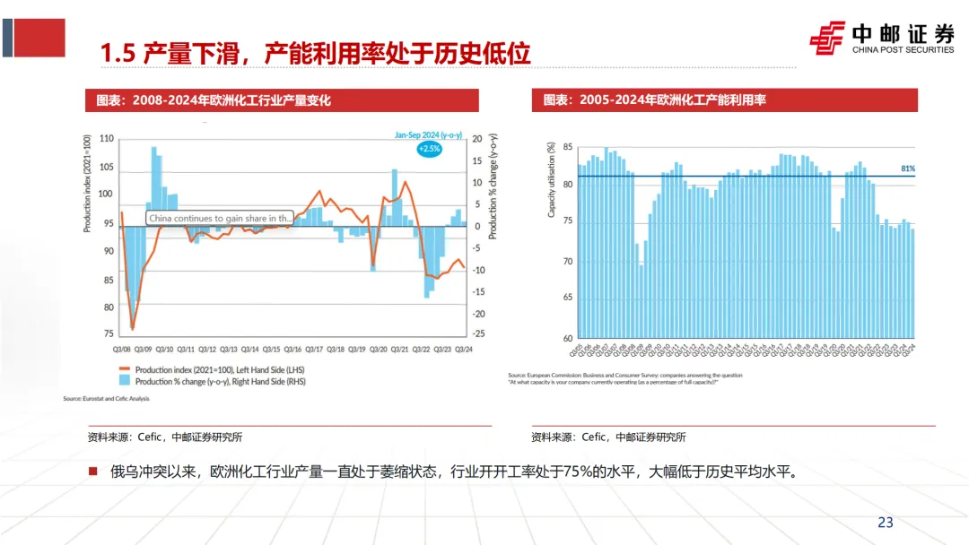 导致装置开工率低下:极高的运营成本迫使企业降低装置负荷,许多基础化学品装置的开工率远低于全球85%-90%的经济水平。
