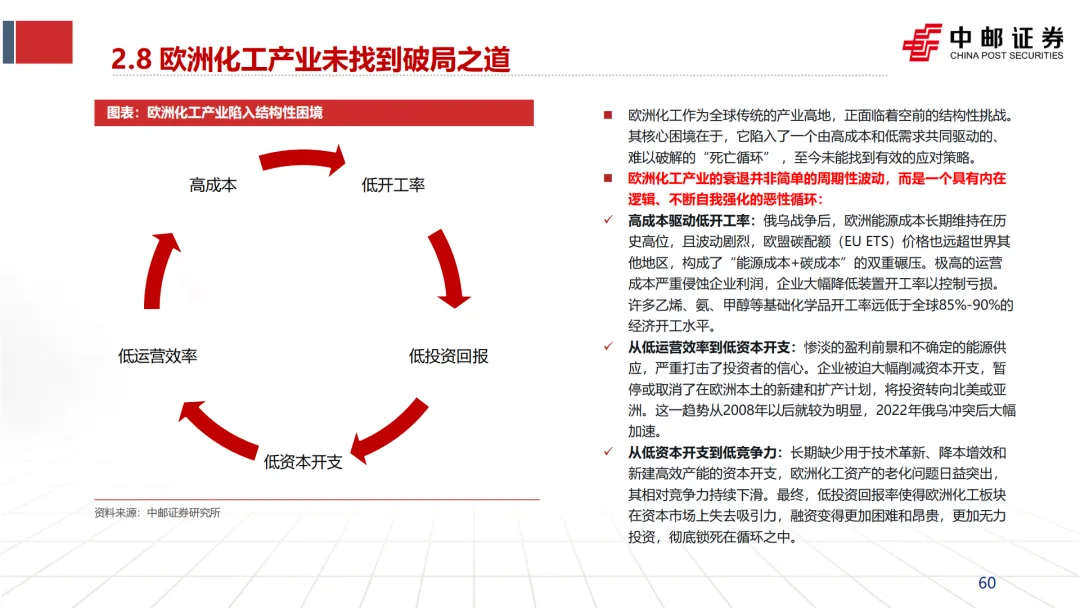 文档将高昂的天然气成本视为欧洲化工陷入“死亡循环”的起点。