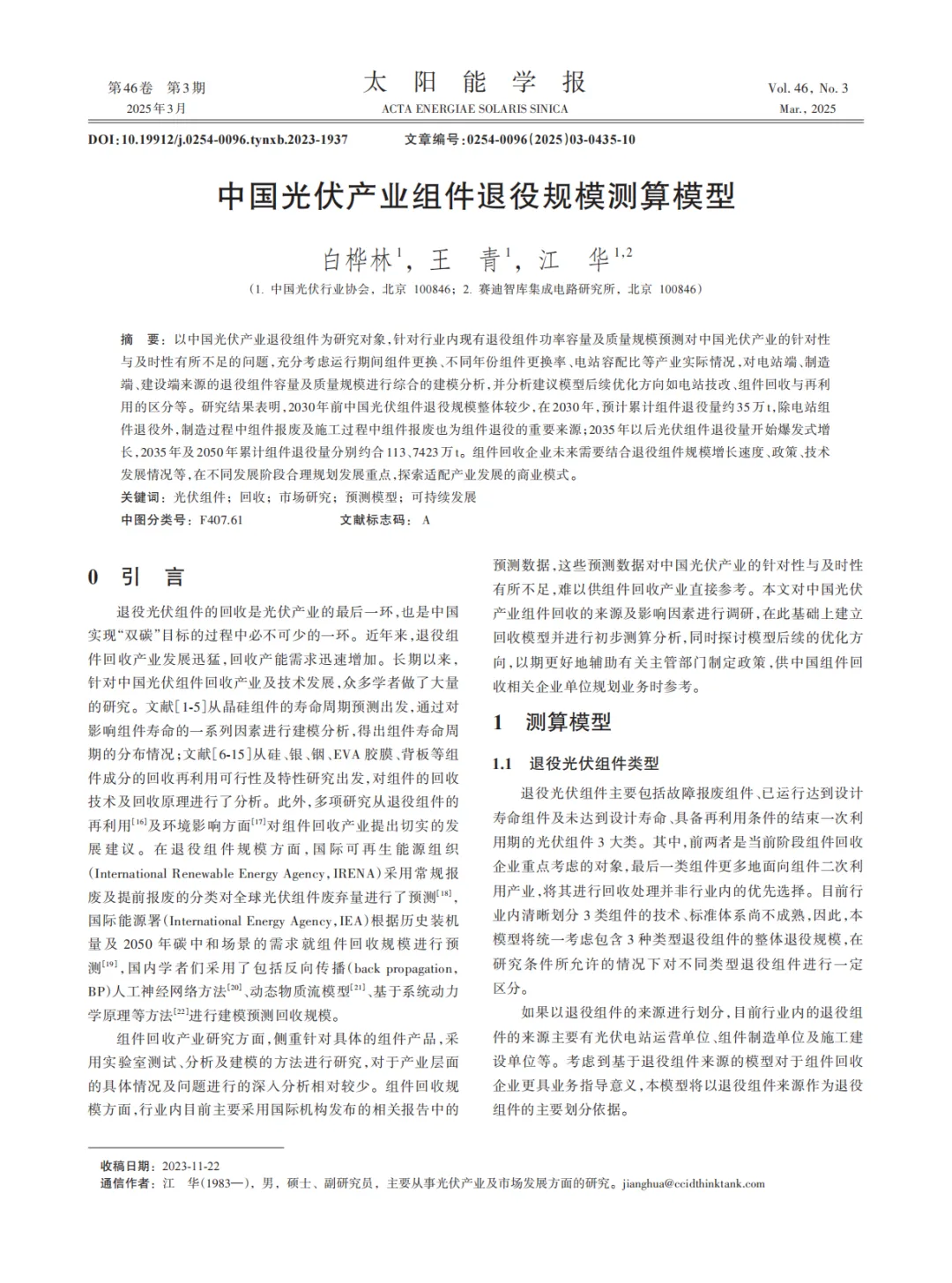 本期文章: 『研报』中国光伏产业组件退役规模测算模型