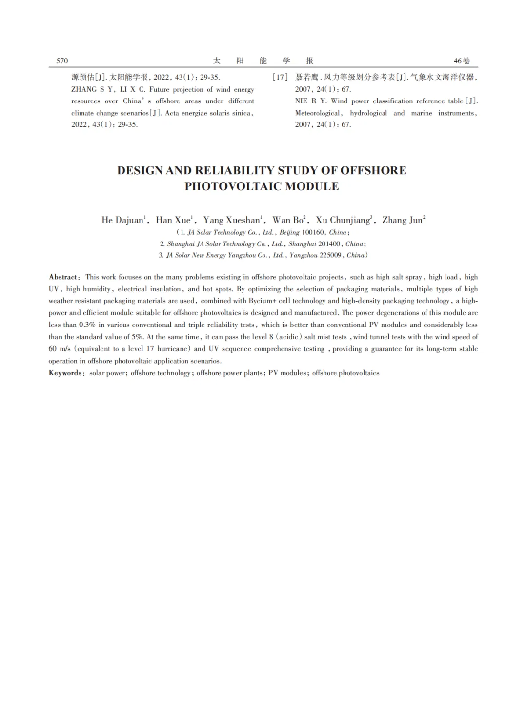 本期文章: 『研报』海上光伏组件的设计及可靠性研究