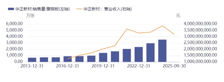 华正新材覆铜板业务在行业中的地位稳固,市场份额显著。2025年三季度,华正新材实现营业收入31.96亿元,其中覆铜板业务收入为16.25亿元,占比77.57%[20][21]。在全球覆铜板市场中,华正新材凭借其在高端材料研发方面的布局,尽管营收排名行业第20,但仍保持了一定的竞争力和市场份额[20]。公司覆铜板业务品类齐全,广泛应用于华为AAU、比亚迪电控和AI服务器昇腾910C等高端市场,显示出其在技术上的优势[21]。同时,华正新材在高端市场中的布局也为其未来的增长奠定了基础。