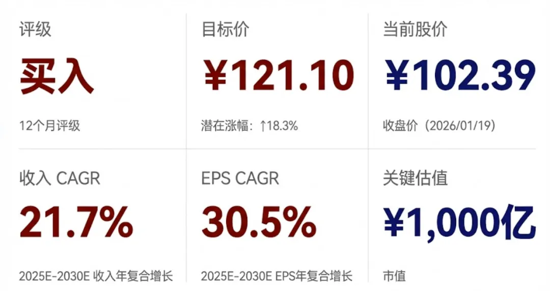 高盛的结论很直接:重申买入(BUY),并给出12个月目标价¥121.10