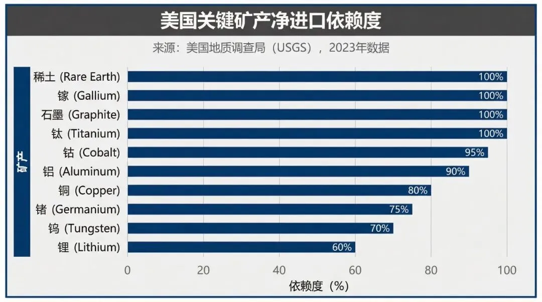 从上表可以看出,稀土、镓、石墨和钛等矿产几乎完全依赖进口,其战略重要性不言而喻。而铝、铜、钴等大宗金属虽然依赖度略低,但因其广泛的工业应用和巨大的需求量,一旦供应出现问题,影响范围将更为深远。