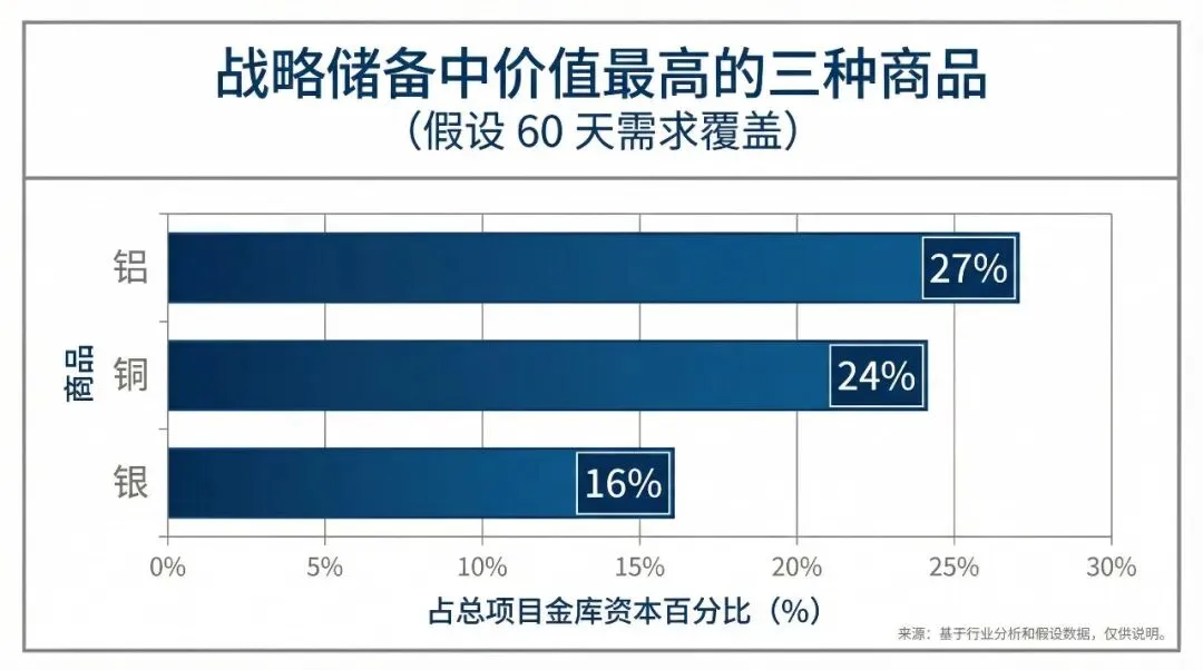 高盛强调,铝、铜和银在战略储备中占据了最高的价值比重,这三者合计占到总项目金库资本的近七成。这表明,即使是针对性储备,这些大宗金属的潜在采购量也足以对全球市场产生显著影响。