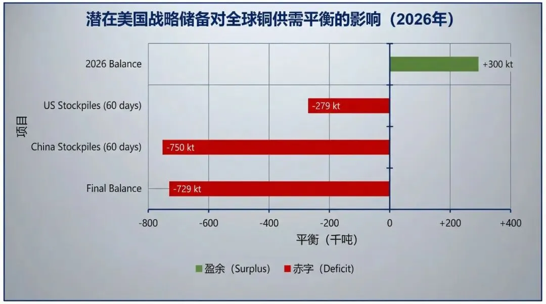 高盛的分析进一步表明,如果美国进行60天需求覆盖的铜储备,即使不考虑中国等其他国家的潜在储备行为,全球铜市场也将出现近300千吨的赤字。如果再考虑到中国等主要消费国的战略储备,全球铜市场将面临更严重的供应短缺,价格可能飙升。