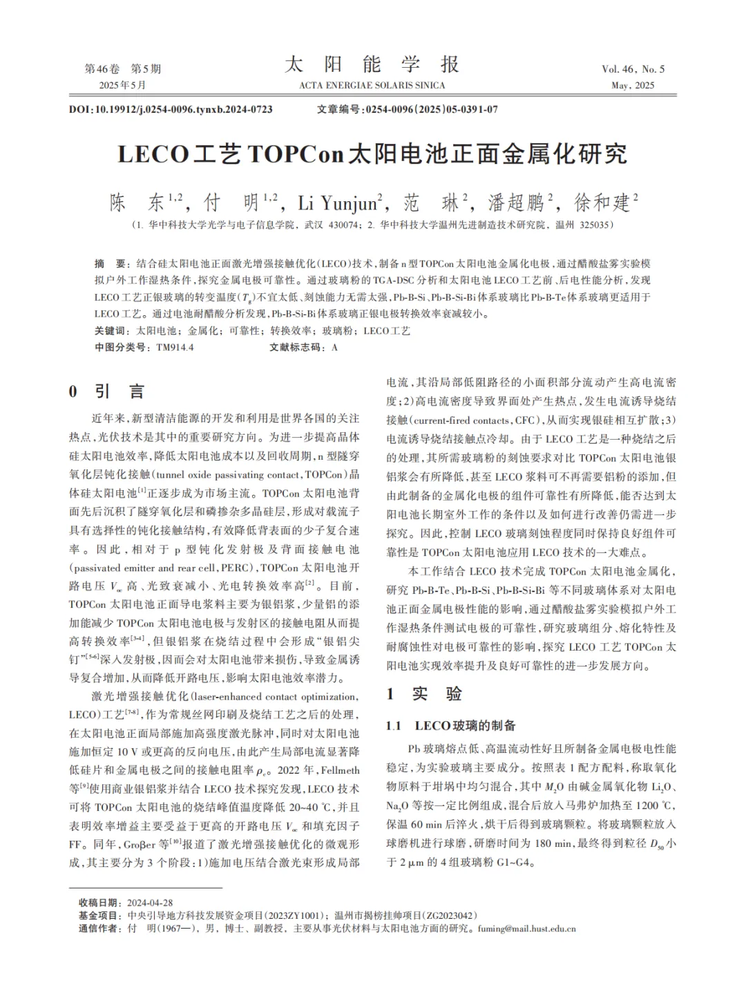 『研报』LECO工艺TOPCon太阳电池正面金属化研究