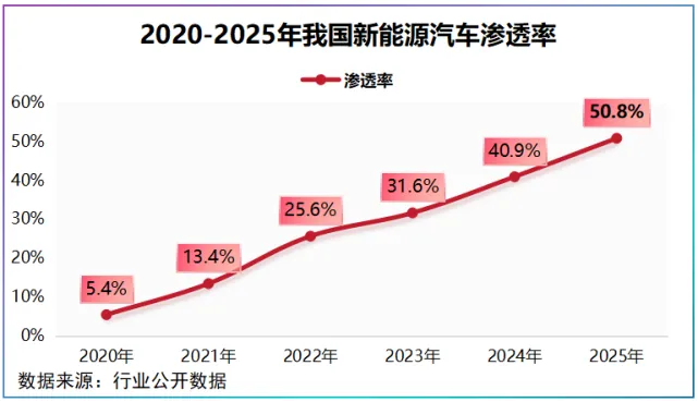 2025年,我国新能源汽车年度渗透率首次突破50%,而在2026年1月中旬,我国新能源车零售渗透率达55.6%,展现出强劲的增长势头。