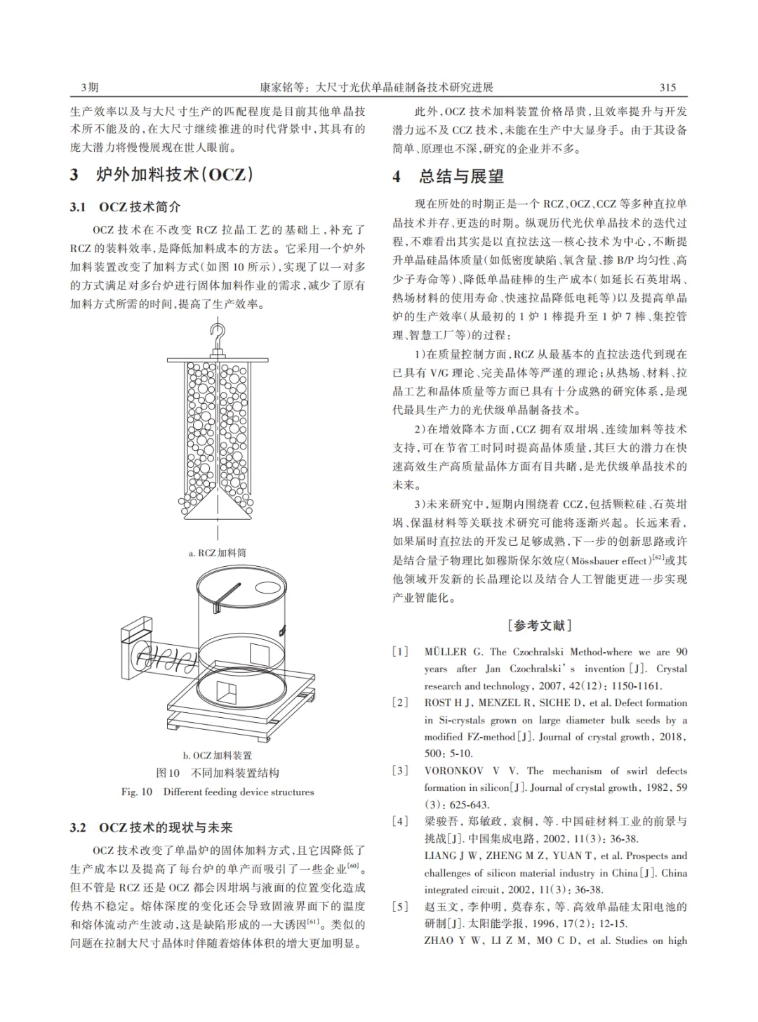 论文重点总结并对比了三种面向大尺寸生产的主流直拉法技术:多次装料拉晶技术、连续装料拉晶技术和炉外加料技术。