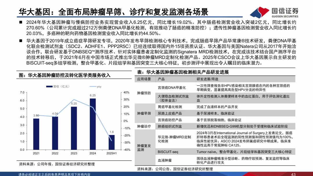华大基因全面布局肿瘤早筛、诊疗、复发监测,肠癌检测营收同比大增 270.6%;