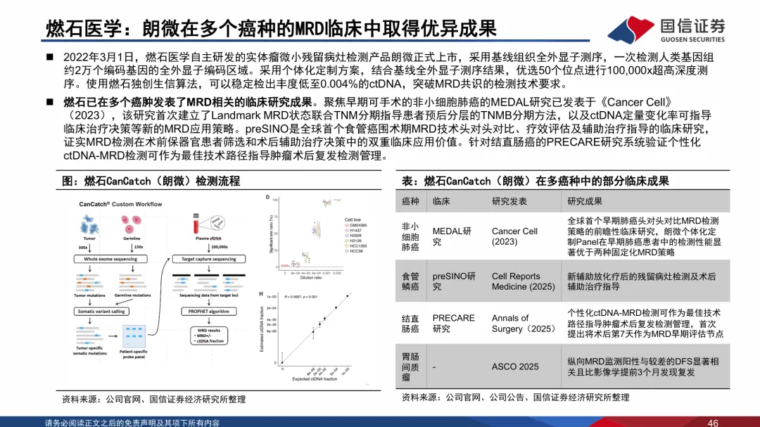 燃石医学的朗微在多癌种MRD临床成果显著,燃小安为全球领先多癌早检产品;