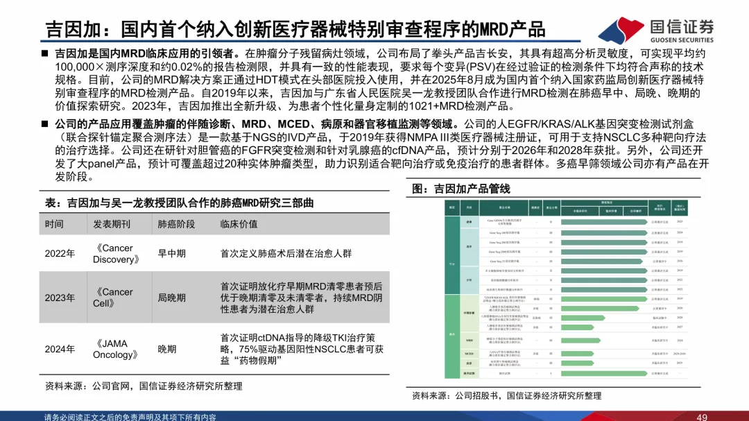 吉因加的MRD产品成为国内首个纳入创新医疗器械特别审查程序的同类产品。