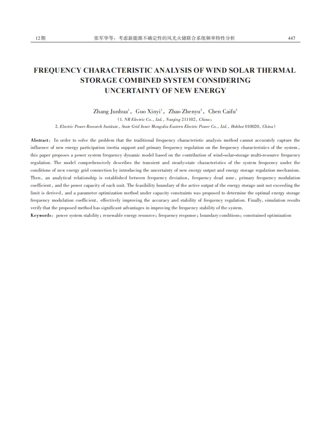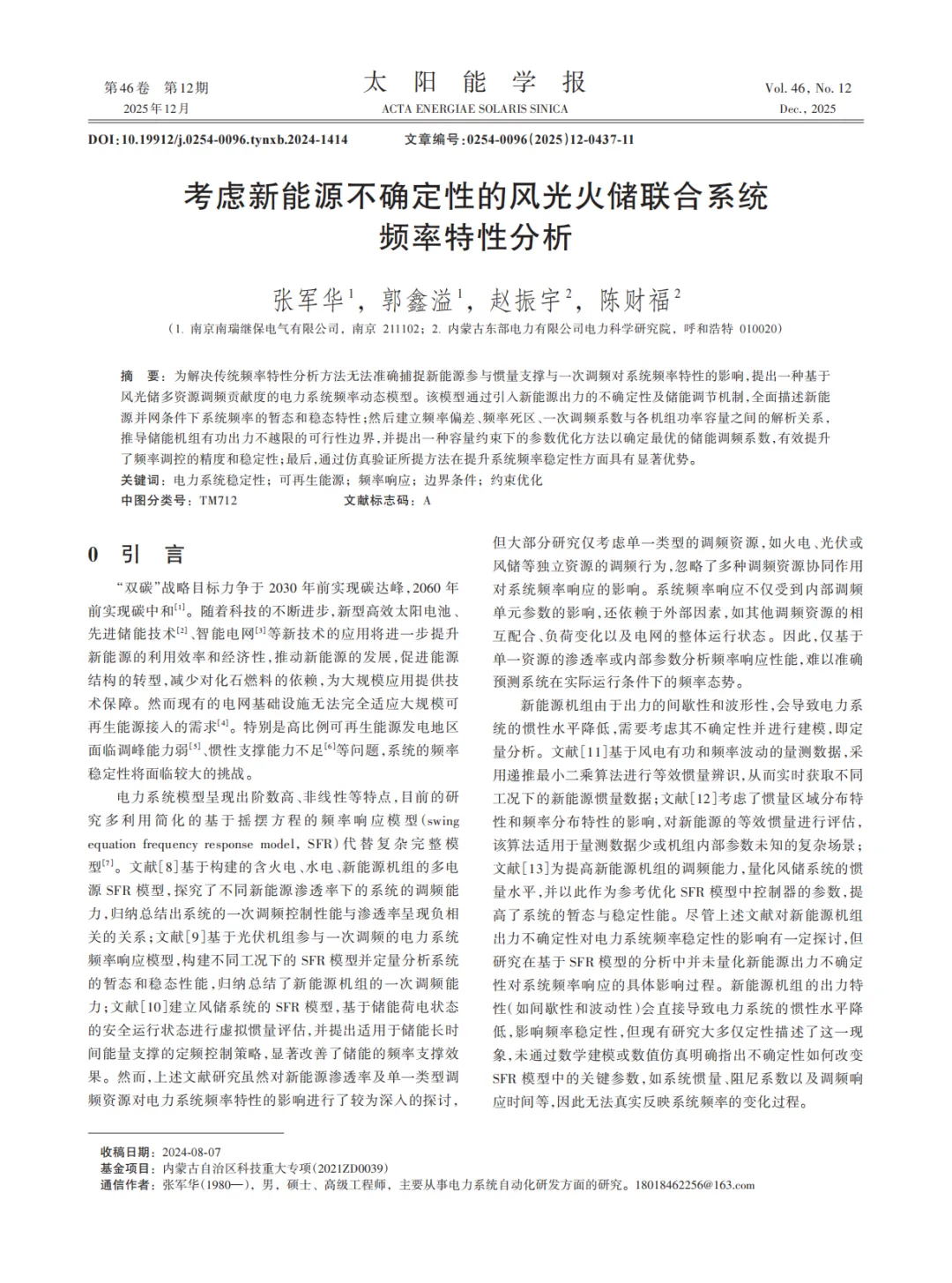 『研报』考虑新能源不确定性的风光火储联合系统频率特性分析