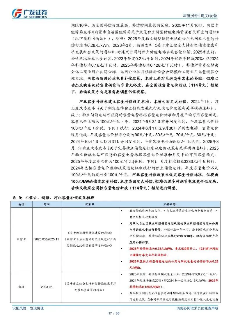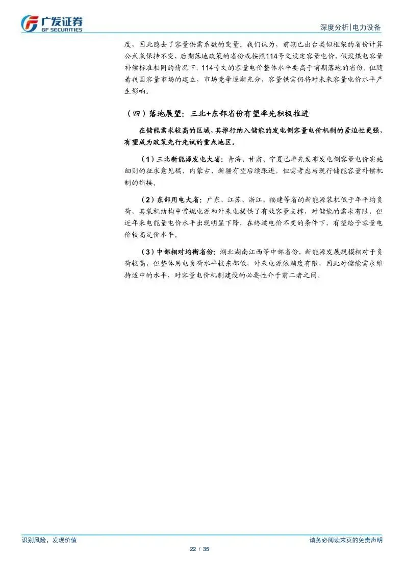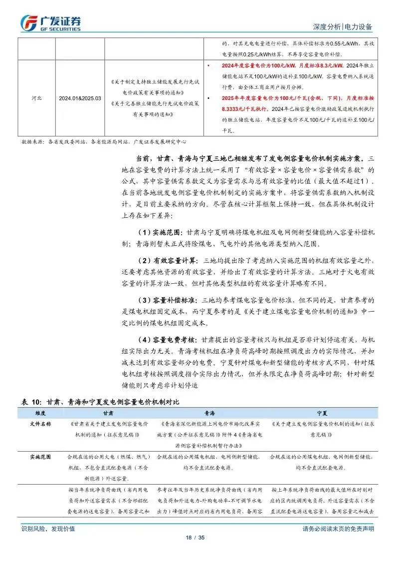 (1)三北新能源发电大省:青海、甘肃、宁夏已率先发布发电侧容量电价实施细则的征求意见稿,内蒙古、新疆有望后续跟进,但需考虑与现行储能容量补偿机制的衔接。