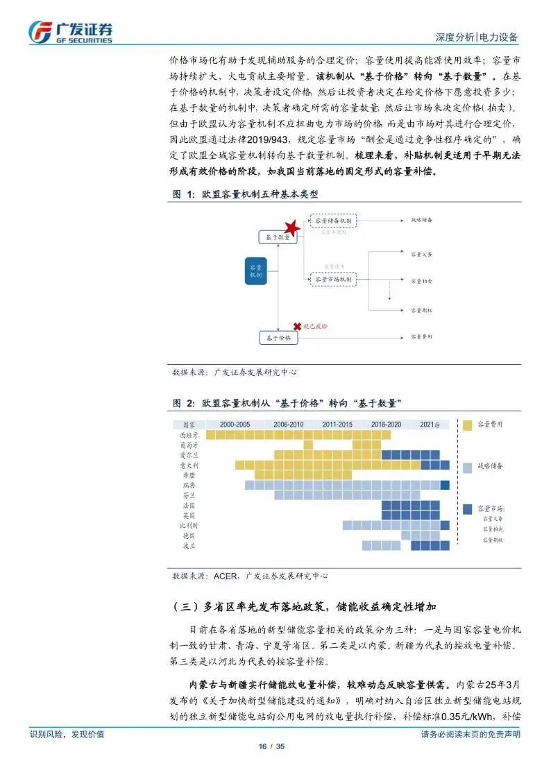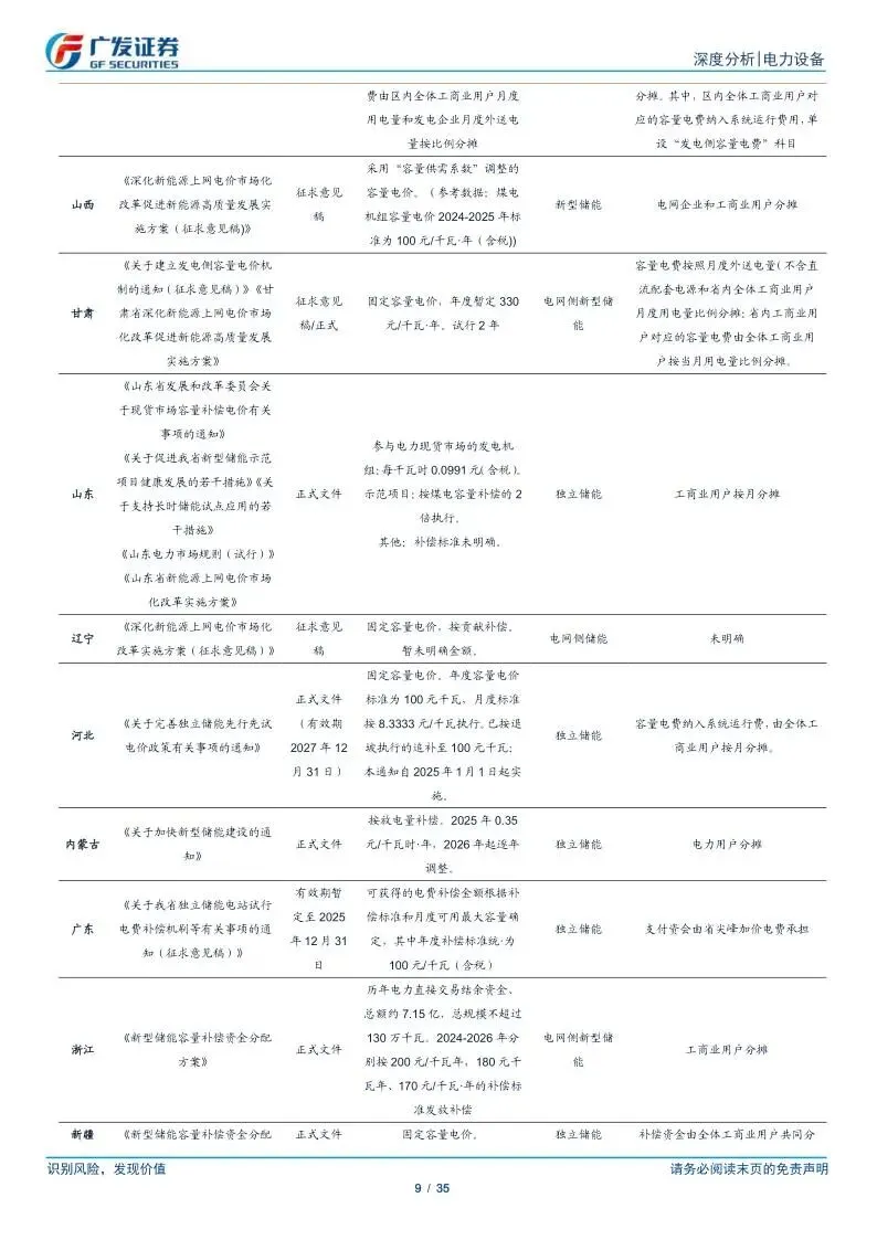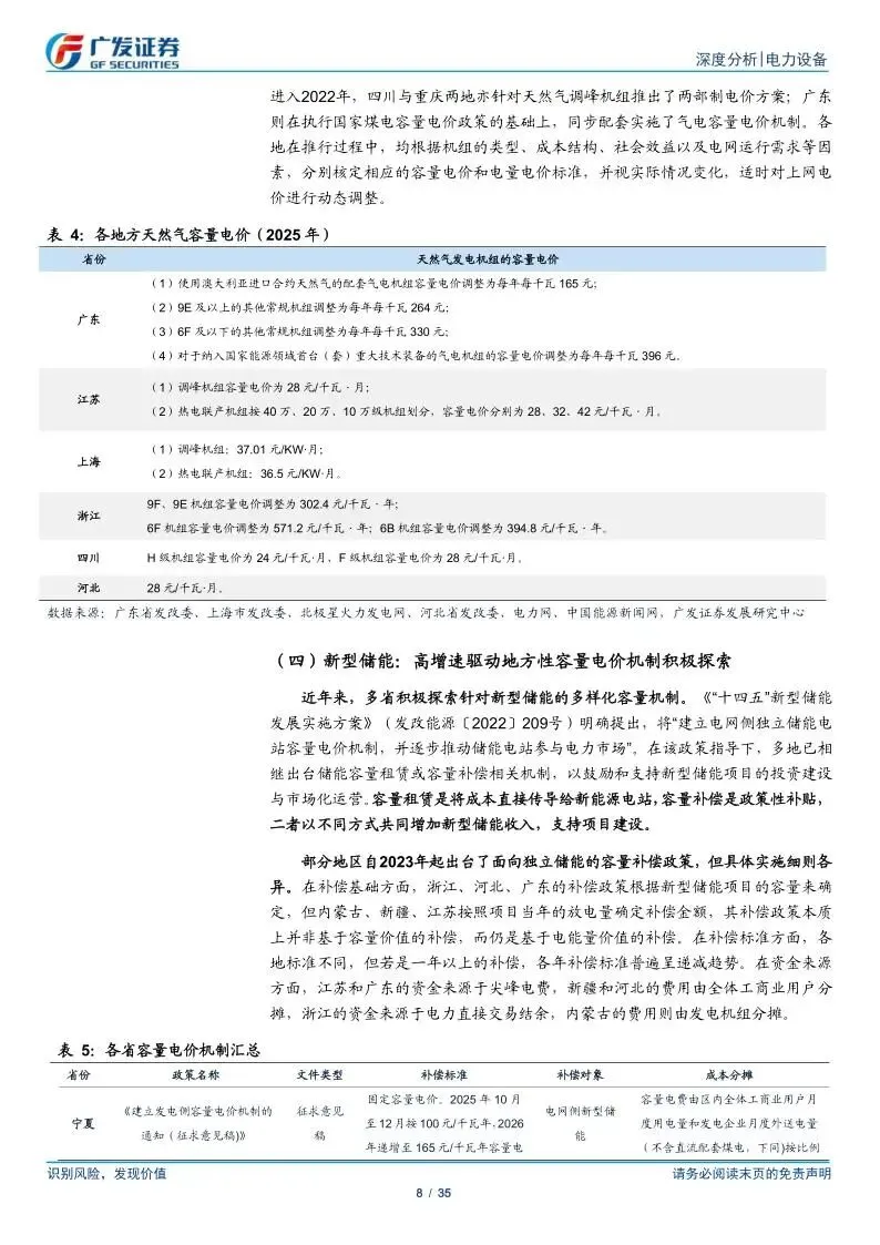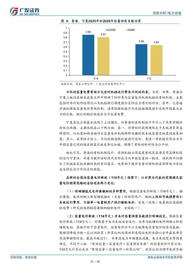 (1)三北新能源发电大省:青海、甘肃、宁夏已率先发布发电侧容量电价实施细则的征求意见稿,内蒙古、新疆有望后续跟进,但需考虑与现行储能容量补偿机制的衔接。