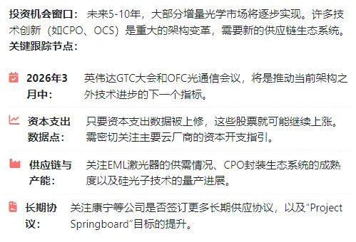 两份顶级报告的共振,为光通信的黄金时代写下了权威注脚。AI需求是坚实的底座,技术演进是澎湃的引擎。投资的主线已然清晰:拥抱高景气,掘金新技术。然而,狂欢之中仍需保持一分清醒。所有的高增长预测都建立在资本开支持续高企、技术替代按理想节奏推进、尤其是当前紧张的价格环境得以维持的假设之上。摩根士丹利的警告值得反复品味:当估值普遍推高至30-40倍远期市盈率时,市场已经在为“完美”定价。未来的股价分化,很可能不再源于对行业贝塔的认知差异,而是对个股阿尔法的精确评判:谁的技术路线押注正确?谁的垂直整合护城河更深?谁能在复杂的供应链竞合中拿到最大利润蛋糕?谁又能安然渡过可能到来的价格波动周期?马年的光通信赛道,注定是一场关于成长性与定价权的深度博弈。