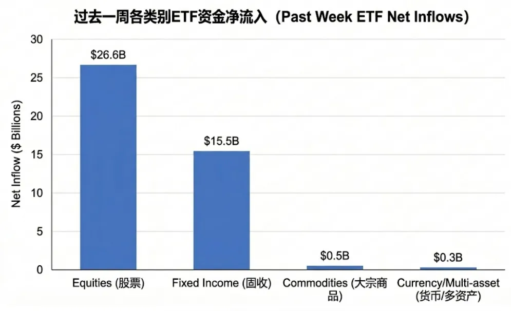 当杠杆资金开始调头,板块轮动的车轮就已经碾压过来了!现在的决战数据已经不再是虚无缥缈的未来愿景,而是实打实的避险与防御动作。板块轮动触发点:在股票板块中,必需消费品(Staples)净流入高达2.2z,房地产(Real Estate)净流入1.6z,避险情绪暴露无遗 。债市与大宗的避险逻辑:固定收益市场出现了从长期国债向短期国债的显著轮动,宽基、公司债和国际债券迎来大约1.5z的流入 。大宗商品宽基录得2.9z的强劲流入,贵金属内部也出现了从白银向黄金的适度避险轮动结论:这是一场确定性极高的“防御战”,资金已经在为未来的波动率飙升构筑坚不可摧的堡垒。04 | 写在最后