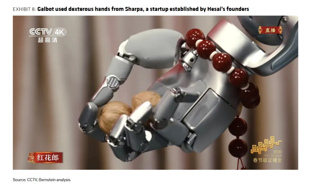 而Exhibit 8(Galbot机器人搭载Sharpa灵巧手)则展现了供应链的配套能力,Sharpa灵巧手可实现单手转两颗核桃的精细操作,而该企业由禾赛创始人创立,也成为禾赛布局机器人赛道的重要信号。