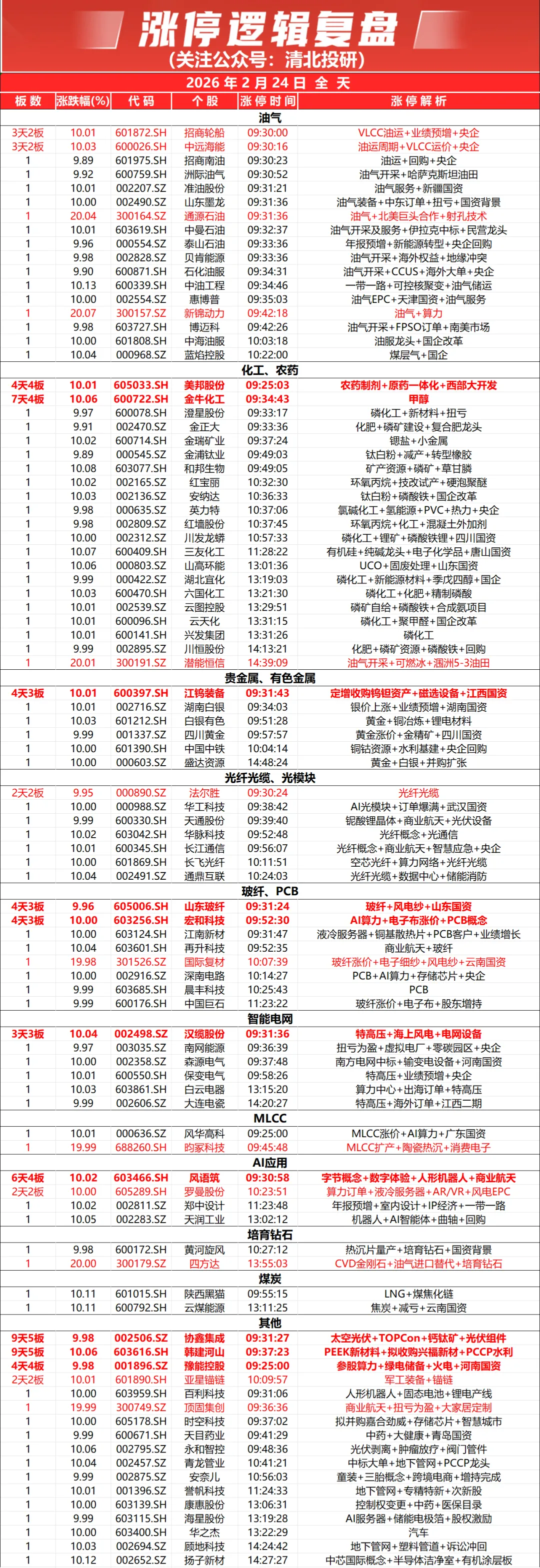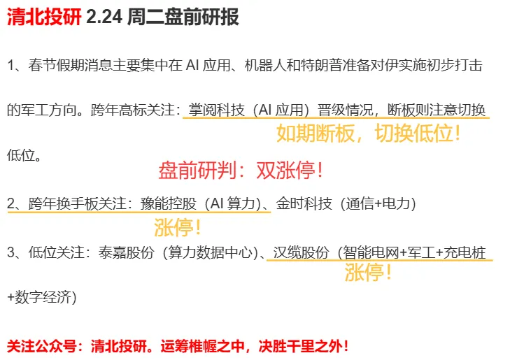 【2.24研报】新年开门红:量价齐升,双涨停!+周三吃肉方向!