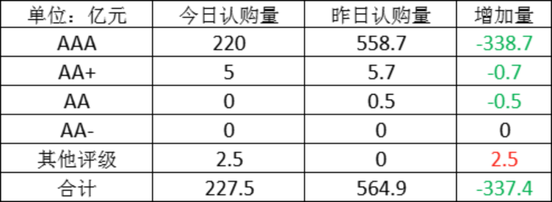 今日存单认购量规模227.5亿元,较上一工作日认购量有所减少,减少了337.4亿元。