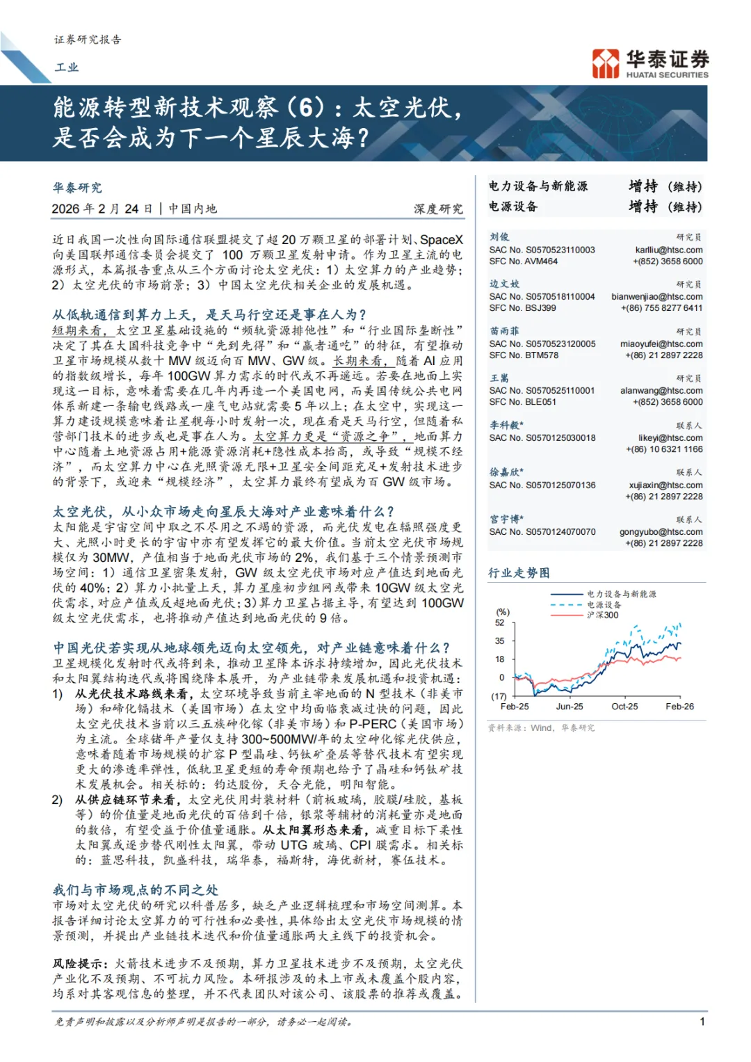 『调研』太空光伏不等于光伏:一个被错误定价的新赛道-260225