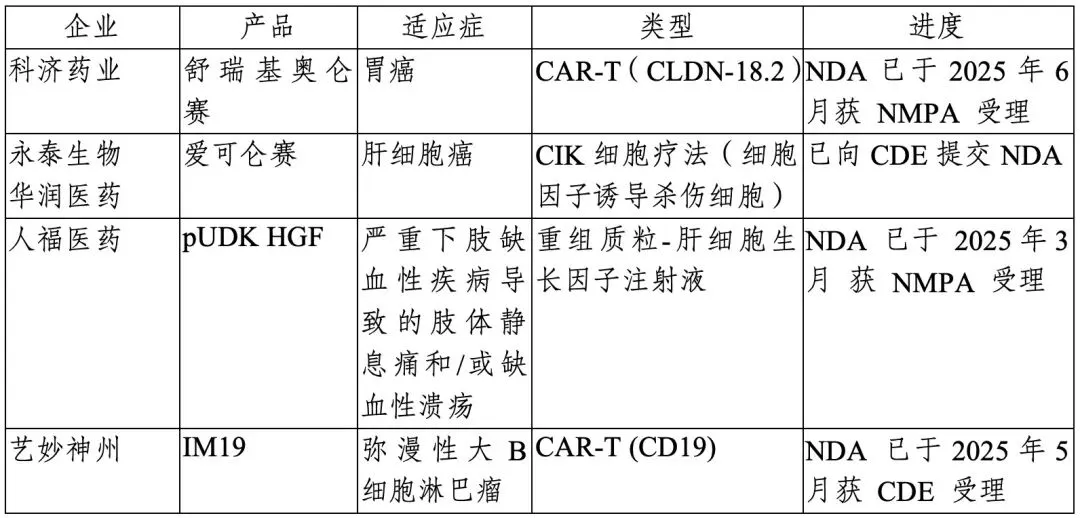 关注通用型 CAR-T(iPSC 或 HLA 敲除)、体内 CAR-T 与 AI多组学融合平台与潜力适应症(实体瘤、血友病、糖尿病等)快速推进管线;产业链上游方面关注具备NMPA/FDA备案的国产耗材、病毒载体CDMO。