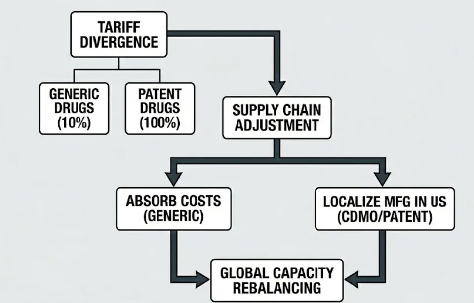 临时关税虚惊一场:美国总统特朗普动用了1974年贸易法第122条,对所有国家征收10-15%的临时关税 。但该法案第14条明确豁免了医药产品和成分 。结论:中国药品对美出口继续沿用原有税率,最新的贸易摩擦升级没有波及医药板块,无需恐慌。 仿制药税率博弈趋稳:中国仿制原料药和制剂目前仍面临约10%的美国关税 。该税率曾在2025年谈判期间一度飙升至20%,后于2025年11月回落至10% 。结论:10%是目前企业需要常态化应对的摩擦成本,中美关系的阶段性缓和能传导至关税层面的让利。 专利药出海面临极高壁垒:与仿制药不同,品牌(专利)药目前面临高达100%的美国关税,该政策于2025年10月实施 。其核心政策诉求是为了迫使制造业回流或在美国本土化 。结论:高附加值创新药的直接出口路径被重税封堵,倒逼了相关供应链必须赴美建厂。 仿制药企的灵活应对:面对10%的关税,仿制药出口商并未选择“硬碰硬”去美国建厂,而是通过按成本进口、利用现有美国工厂、与进口商分担税费,或自行吸收在毛利率中来应对 。结论:10%的税率痛感仍在可承受范围内,目前尚未有任何仿制药企宣布美国本土化建厂计划。 特定品种自带“免死金牌”:生产无菌注射剂的中国企业在当下具有显著优势 。由于美国本土正面临这类药物的严重短缺,进口需求极为刚性 。结论:细分领域的强劲供需关系能够有效对冲地缘政治带来的政策风险。