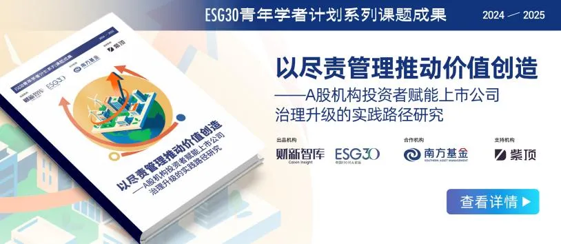 与此同时,A股市场生态也凸显尽责管理的必要性。截至2024年三季度,以公募、外资、私募、保险为代表的A股机构投资者持股市值达16.3万亿元,占比22.2%,成为影响上市公司治理的重要力量。在此背景下,近期财新智库组织撰写并发布的《以尽责管理推动价值创造——A股机构投资者赋能上市公司治理升级的实践路径研究》中,选取具有代表性的国内外头部资管机构的实践案例,为行业提供借鉴。其中,南方基金作为国内较早介入ESG与尽责管理领域的公募基金,其体系化实践与本土化创新,有望为A股机构投资者提供可借鉴的管理框架与行动路径。