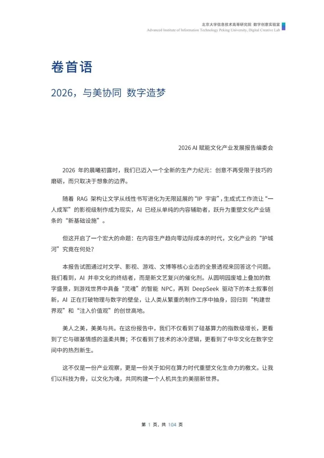 研报推荐|美美与共:2026+AI赋能文化产业发展报告-AI创意业态透视(共104页 & 附下载)