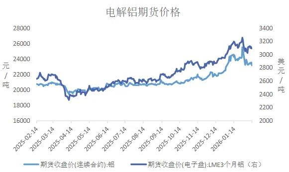 2026年1月,全球铝市场呈现"供需紧平衡、价格强势运行、结构分化加剧"的总体特征。国内电解铝产能逼近政策天花板、海外供应收缩、新能源需求爆发的多重因素驱动下,铝价创下历史新高。