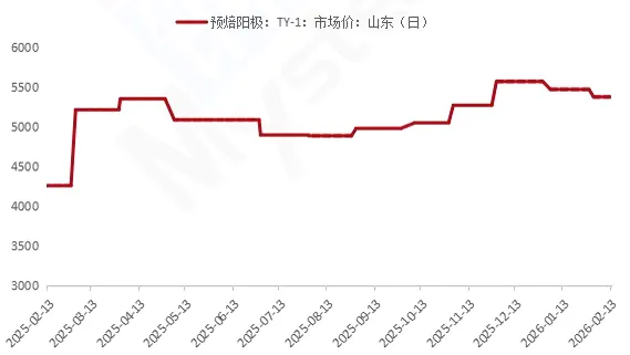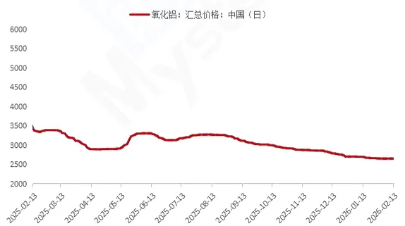 预焙阳极方面 :预焙阳极价格小幅下行,山东大型电解铝厂2026年2月预焙阳极采购基准价格较1月下跌95元/吨,执行现汇价格5229元/吨。原料市场持续走弱,阳极在成本面利空影响下价格出现连跌走势。预计本月阳极价格虽然继续保持下行走势,但跌幅尚在市场预期之内,预焙阳极企业整体生产积极性较高,下游需求支撑良好,预焙阳极市场主流价格持稳运行。