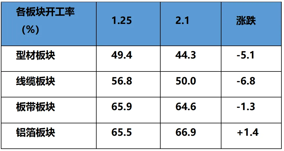 各板块开工率