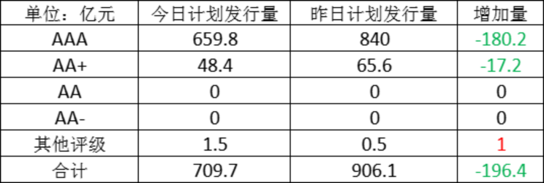 今日存单计划发行量规模709.7亿元,较上一工作日计划发行量有所减少,减少了196.4亿元。