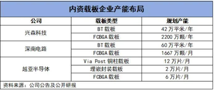 兴森科技、深南电路和越亚半导体是FCBGA载板领域切实有投入的企业。