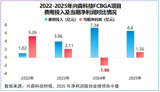 尽管,2025年公司FCBGA封装基板项目全年费用投入有所收缩,但仍高达6.6亿元,依然对公司利润形成一定拖累。