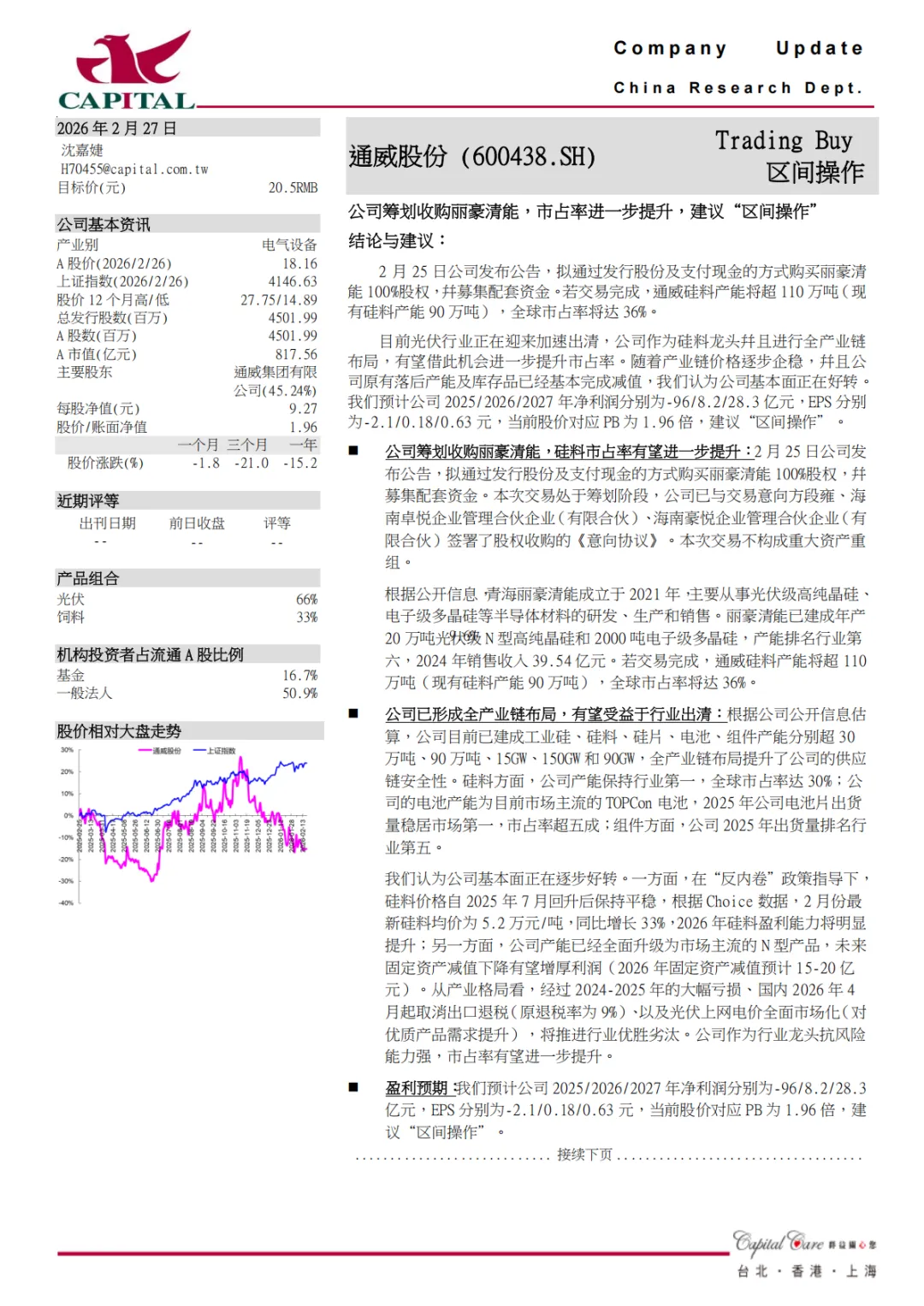 『研报』通威股份-600438-公司筹划收购丽豪清能,市占率进一步提升,建议“区间操作”