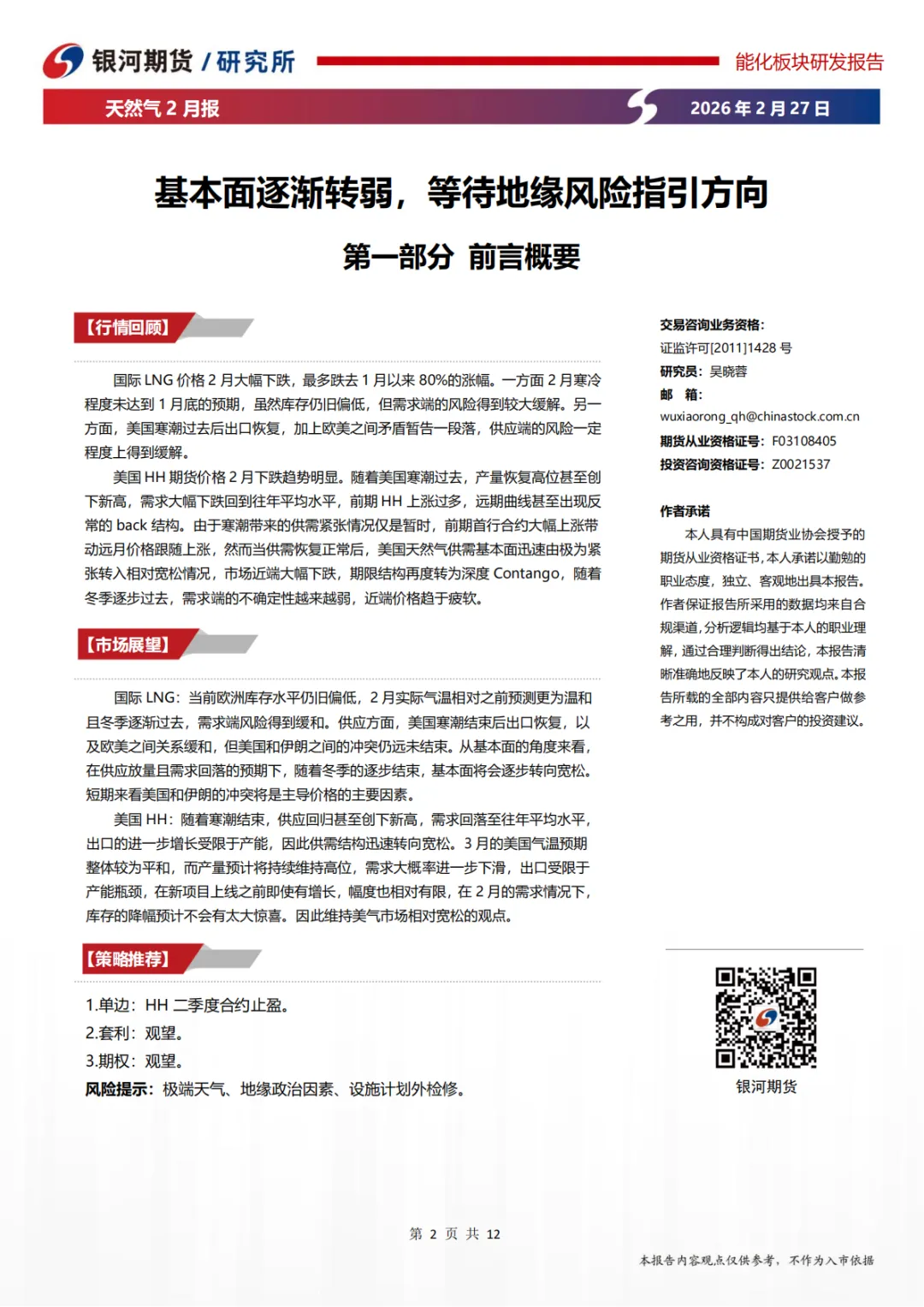 本期文章: 『研报』天然气2月报:基本面逐渐转弱,等待地缘风险指引方向