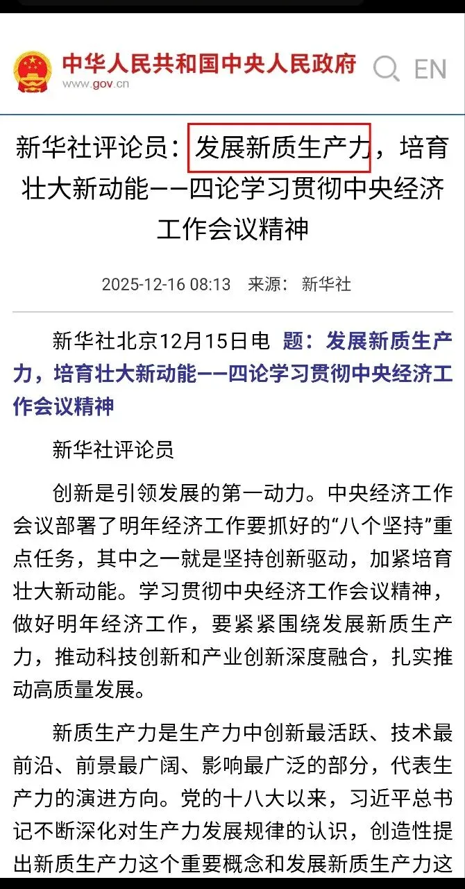 另外,人工智能通过对劳动者、劳动资料、劳动对象三大要素的根本性变革,正在构建以智能技术为核心的现代化产业体系。这个常关注政治的或许明白,用一个词可直接概括:培养新质生产力!