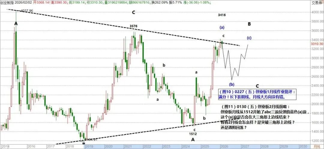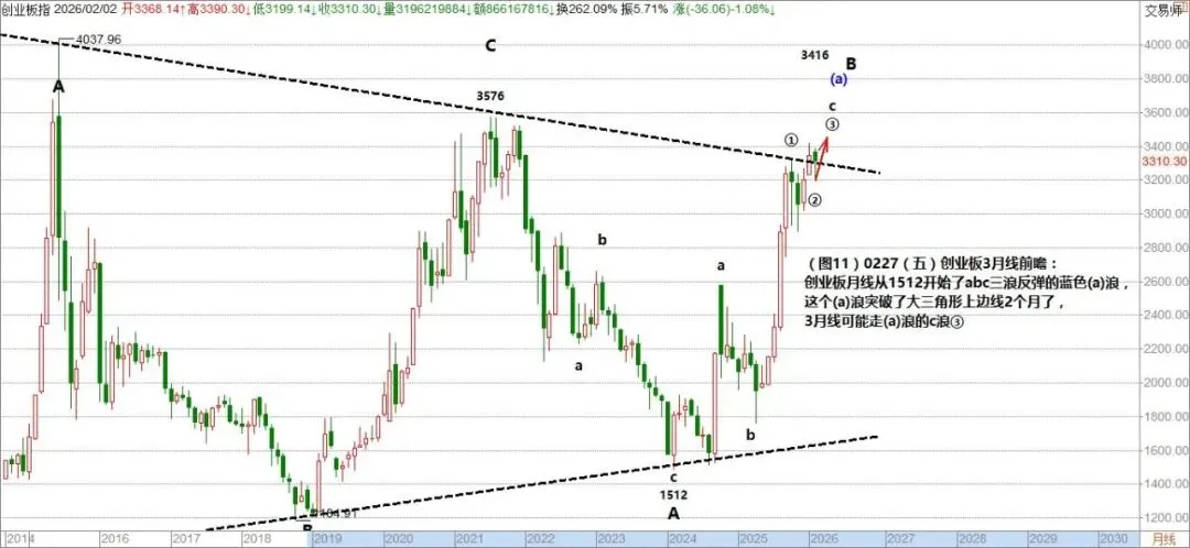 创业板月线从1512开始了abc三浪反弹的蓝色(a)浪,