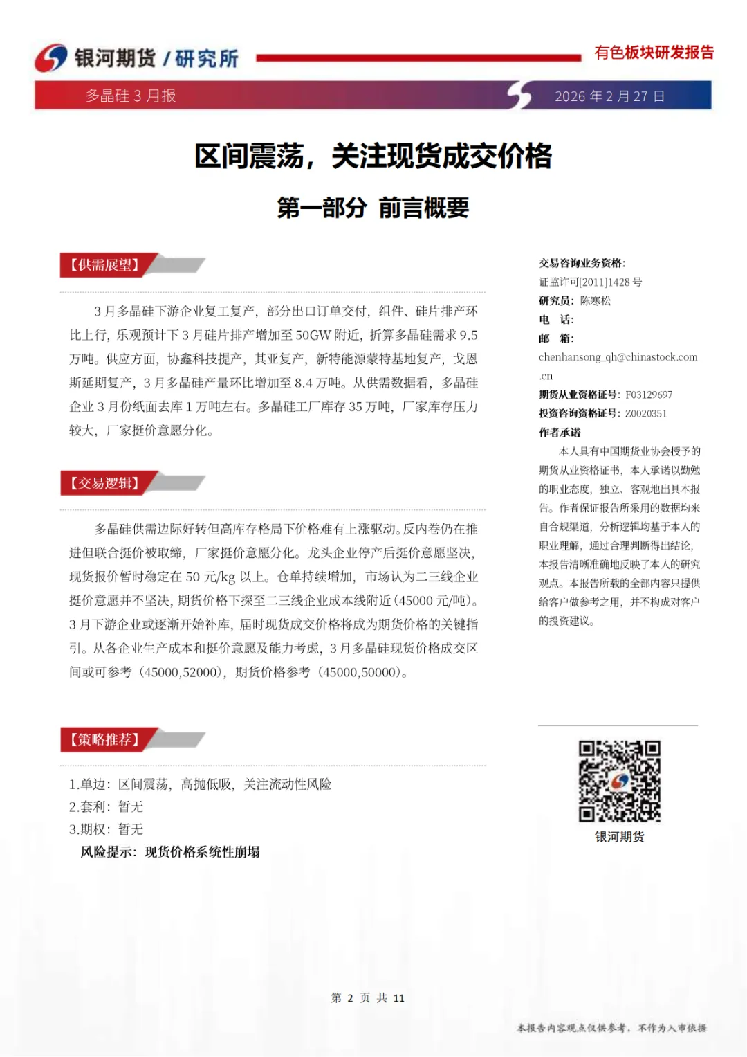 『研报』多晶硅3月报:多晶硅区间震荡,关注现货成交价格