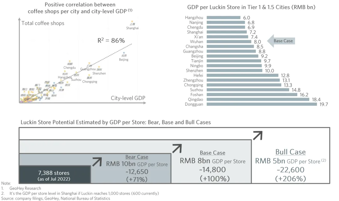 测算逻辑是基于一二线城市对标星巴克,下沉市场对标蜜雪冰城。