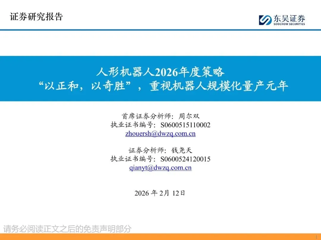 人形机器人2026年度策略:“以正和,以奇胜”,重视机器人规模化量产元年