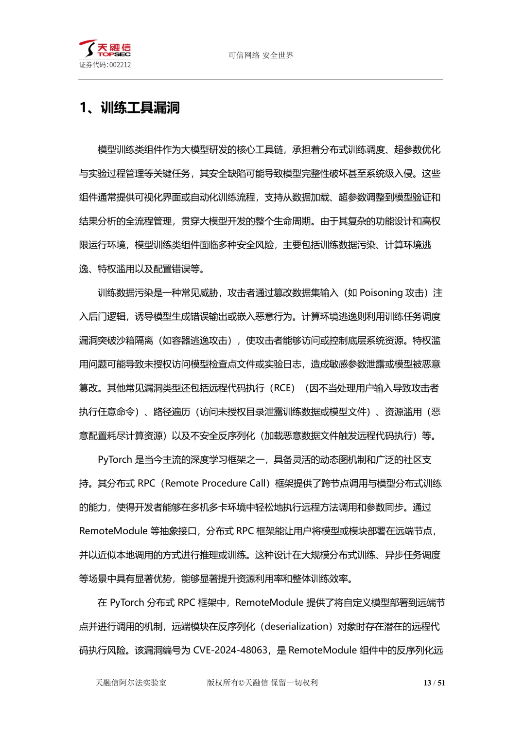 • DoS(拒绝服务):比如空 prompt 触发断言直接把 API 服务打崩;或者 best_of这类参数被滥用,资源耗尽后服务失去响应。• RCE(远程代码执行)风险:当你从不可信来源加载模型检查点,若调用链里存在 torch.load()的反序列化入口,就可能被恶意权重“带走”(本质是 pickle 风险)。